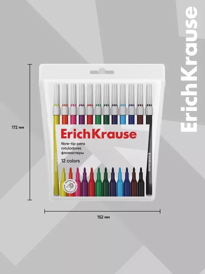Фломастеры 12 цветов ErichKrause light, в футляре с европодвесом