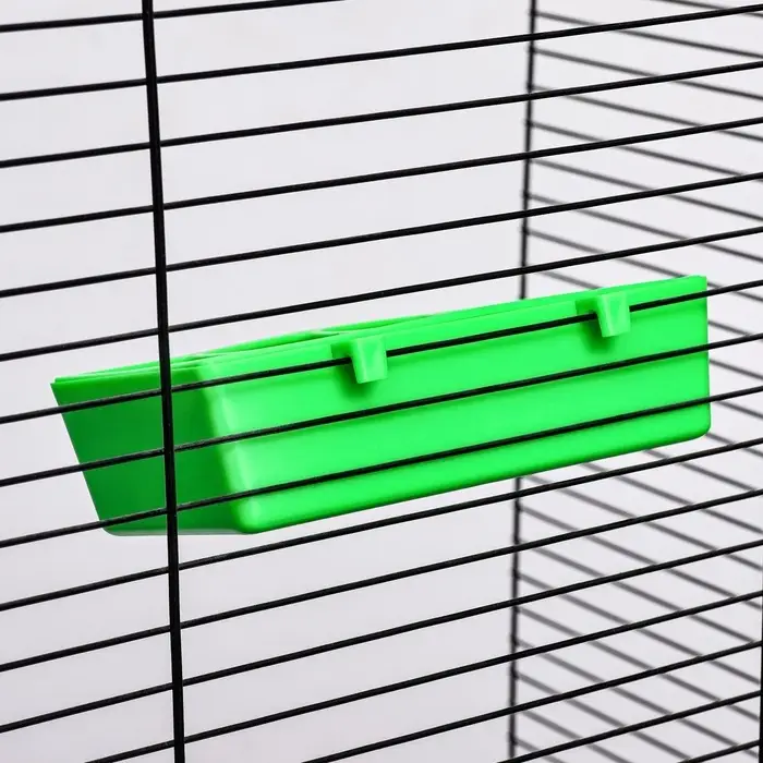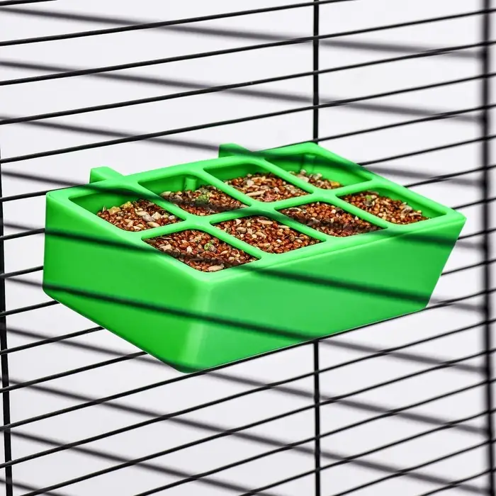 - Низкие борта (4,4 см): удобны для птиц — легко доставать корм клювом, но достаточно высоки, чтобы зёрна не высыпались при активном клевании.