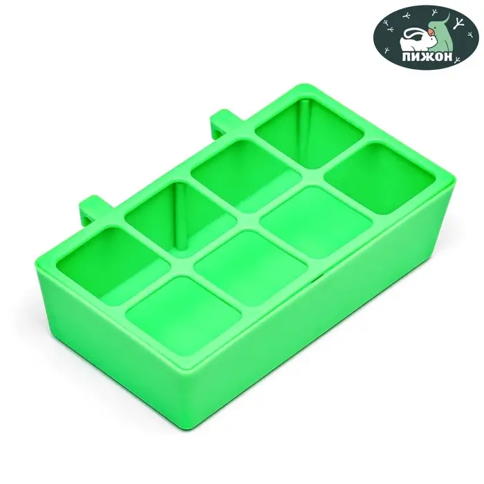 Кормушка для кормления, 16.9×8.9×4.4 см, с защитой на 8 ячеек, пластик, зелёная