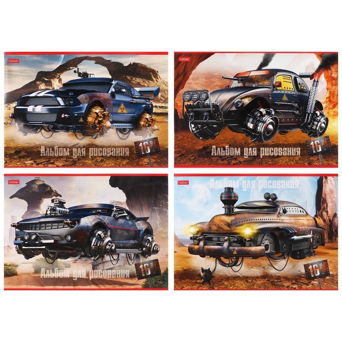 Альбом для рисования A4, 16 листов "Дизельпанк", обложка мелованный картон, блок 100 г/м2, МИКС
