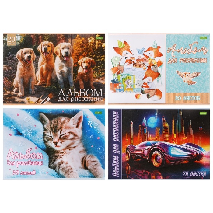 Альбом для рисования А4, 20 листов, на скрепке, "Ассорти" Выпуск №4, обложка офсетная бумага, блок 100 г/м2, МИКС