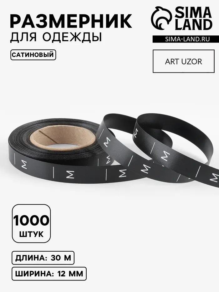 Размерник сатиновый, M, 1000 шт., 12 мм, 30 м, чёрный