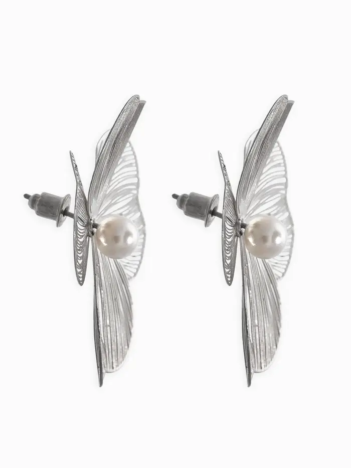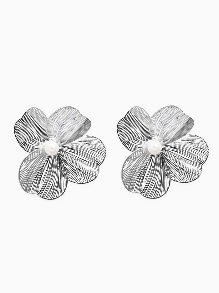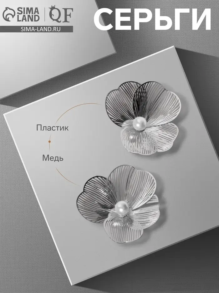 Серьги с жемчугом «Цветы», лёгкие, белые в серебре