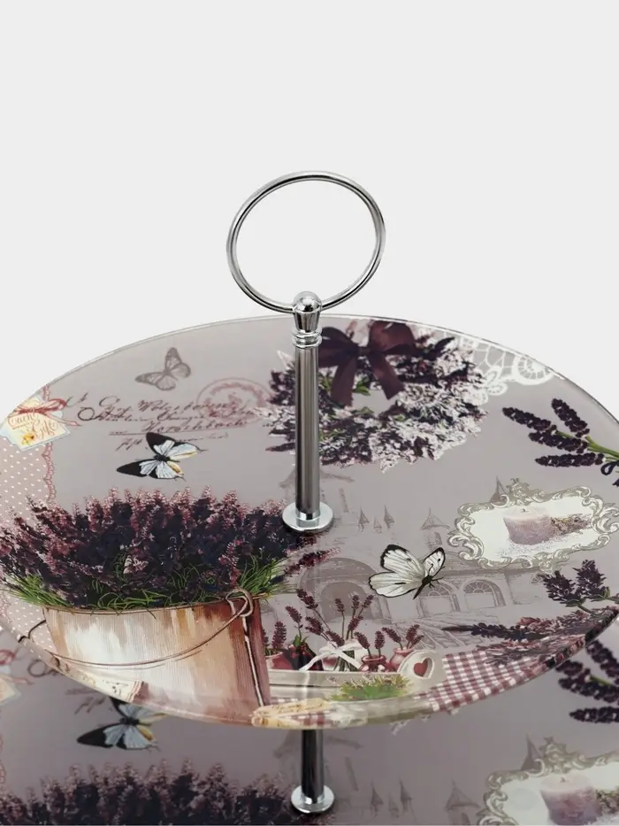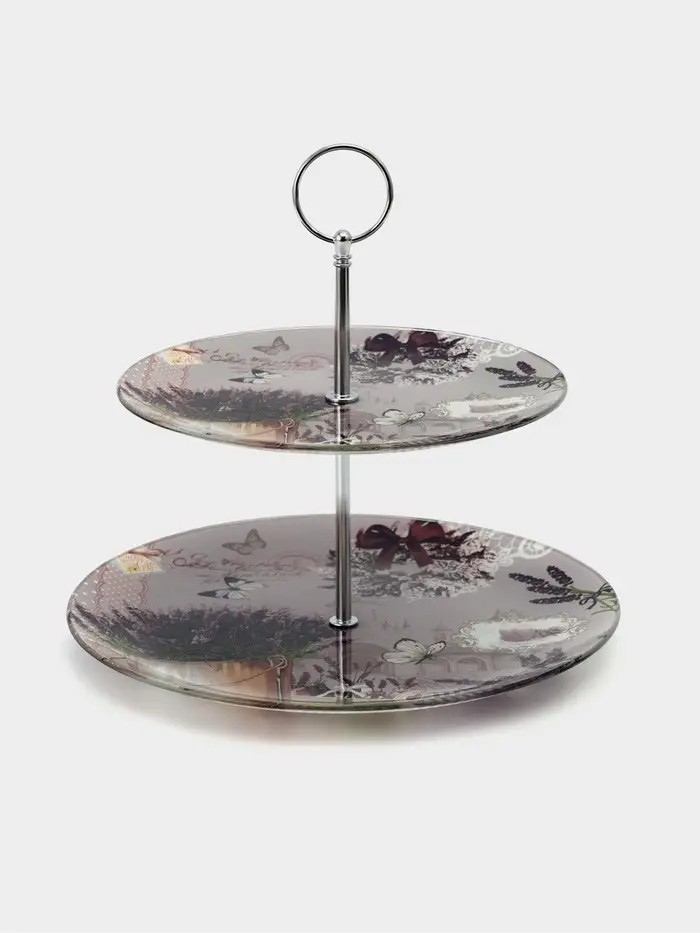 Оригинальное 2-х ярусное блюдо придаст современный вид любому столу. Блюдо можно использовать для подачи фруктов и различных кондитерских изделий. Благодаря красочному дизайну эта посуда станет чудесным украшением праздничного стола и дополнит Ваш интерьер.