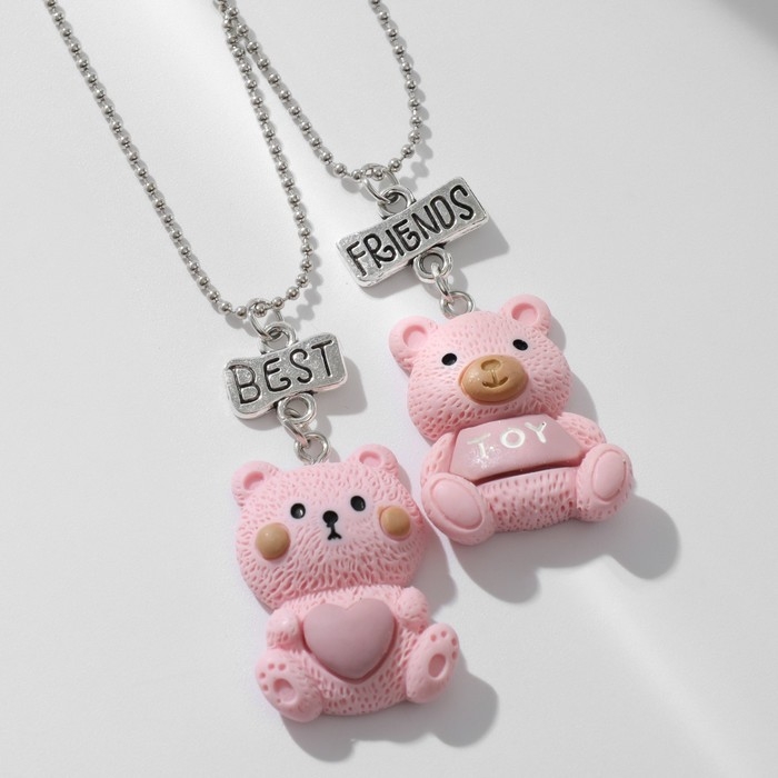 Кулоны «Неразлучники» медведи, цвет розовый в серебре, 40 см