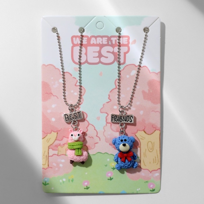 Кулоны «Неразлучники» медведь и лама, цвет сине-розовый в серебре, 40 см