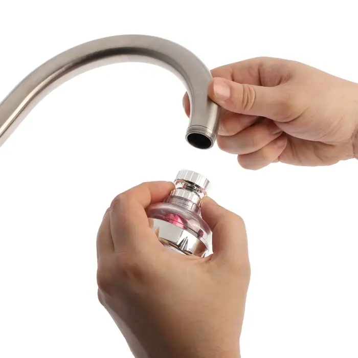 Микроскопические точки в аэраторе рассекают водный поток на множество мелких частиц и насыщают его пузырьками воздуха, обеспечивая чистую струю воды без брызг.