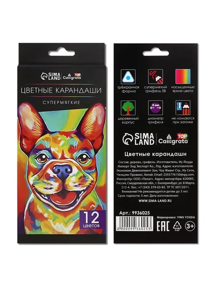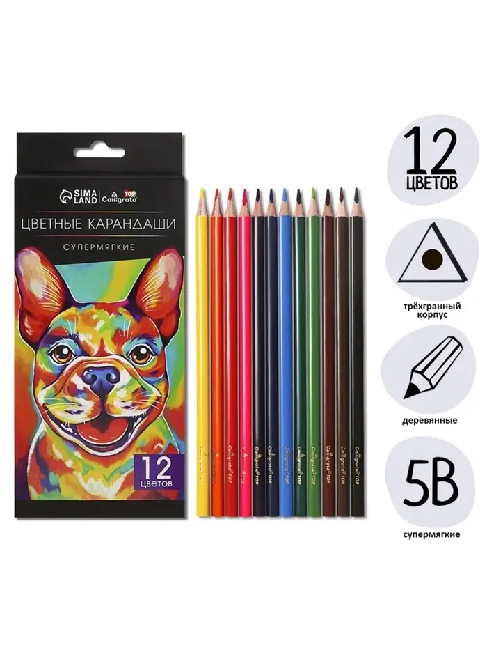 Карандаши Calligrata, 12 цветов, супермягкие, диаметр грифеля 3 мм
