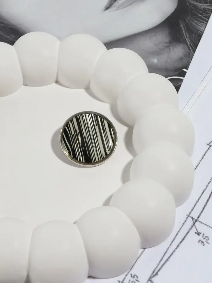 Эта пуговица станет выразительной деталью на кожаной куртке, украшением сумки или завершающим штрихом изделия. Контрастное черно-серебристое покрытие сочетается как с темными, так и со светлыми материалами.