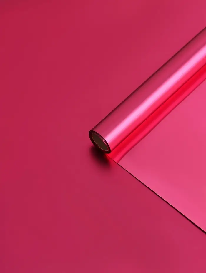 - Глубокий рубиновый цвет с лаковым финишем: БОПП толщиной 65 микрон равномерно прокрашен в массе в оттенок благородного красного с едва уловимым холодным подтоном. Глянцевая поверхность интенсивно отражает свет, создавая эффект драгоценного камня или лакированной эмали. Цвет остаётся сочным при любом освещении.