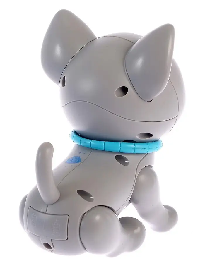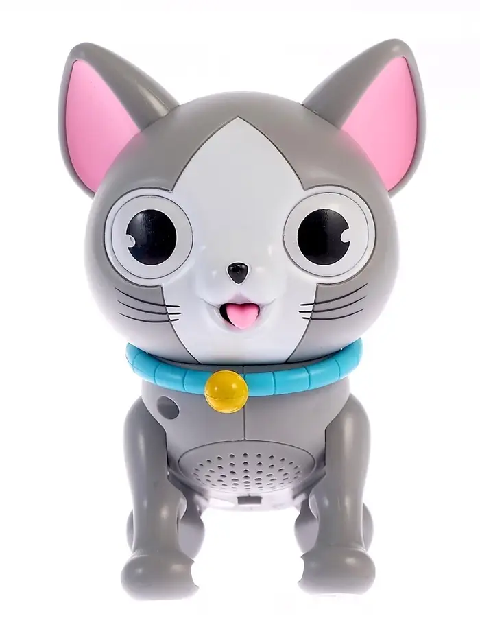 - Если нажать на кнопочку на спинке котёнка, он начнёт издавать забавные звуки, а его глазки загорятся синим цветом.