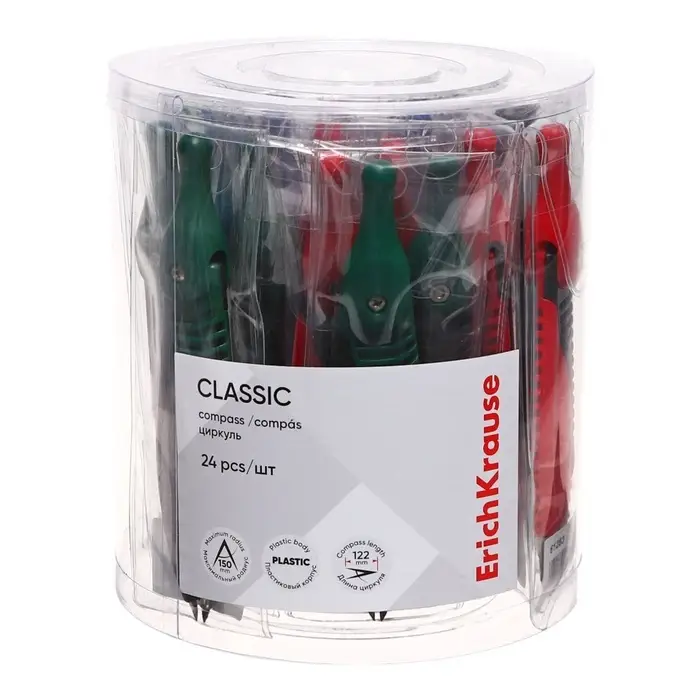 Циркуль пластиковый ErichKrause. Classic, 122 мм, PVC чехол, МИКС