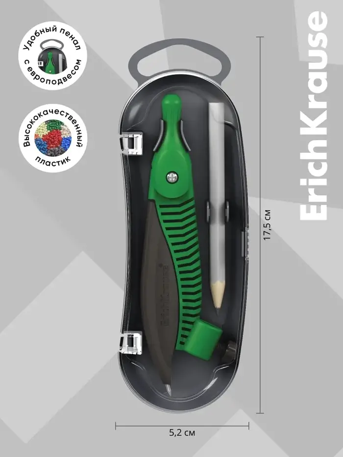 - PVC-чехол защищает циркуль от повреждений и удобен для переноски.