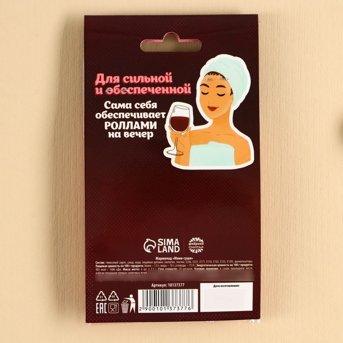 Мармелад мини суши «Сильная и обеспеченная», 6 шт (19,8 г.)
