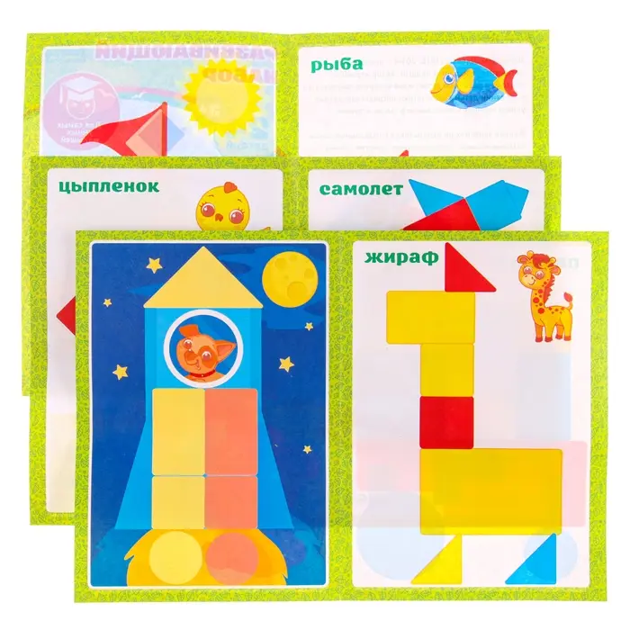 Для комфортных занятий в комплекте есть дидактическое пособие с примерами-схемами сборки картинок.
