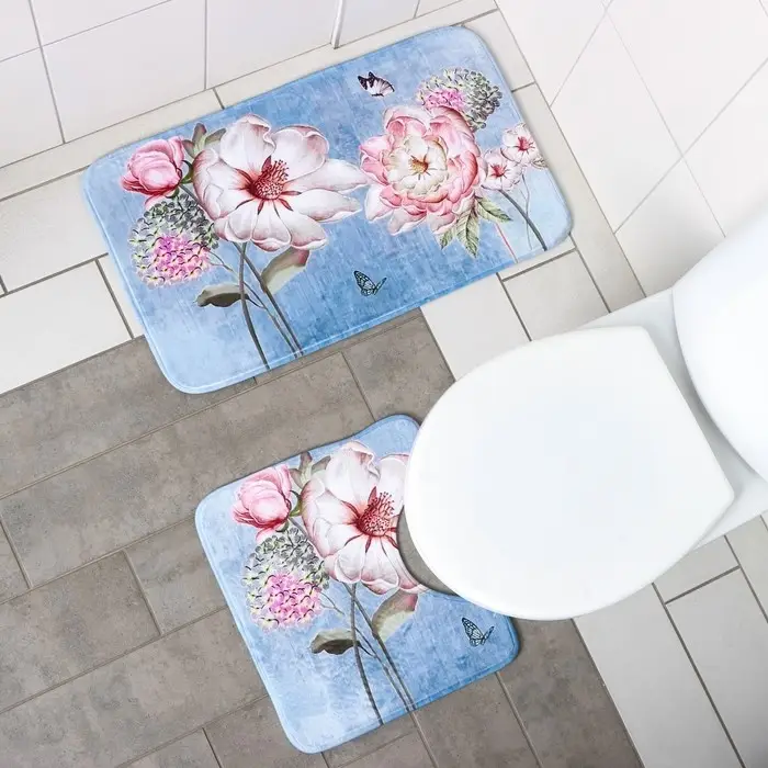 Коврики для ванной и туалета Доляна «Весна», 2 шт., 40×45 см, 45×75 см