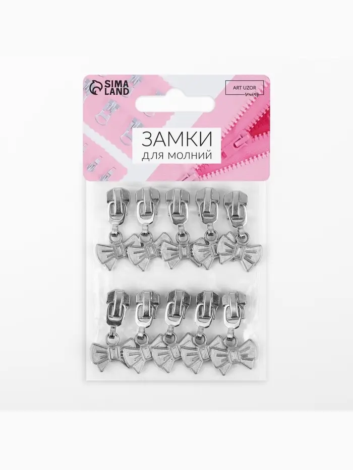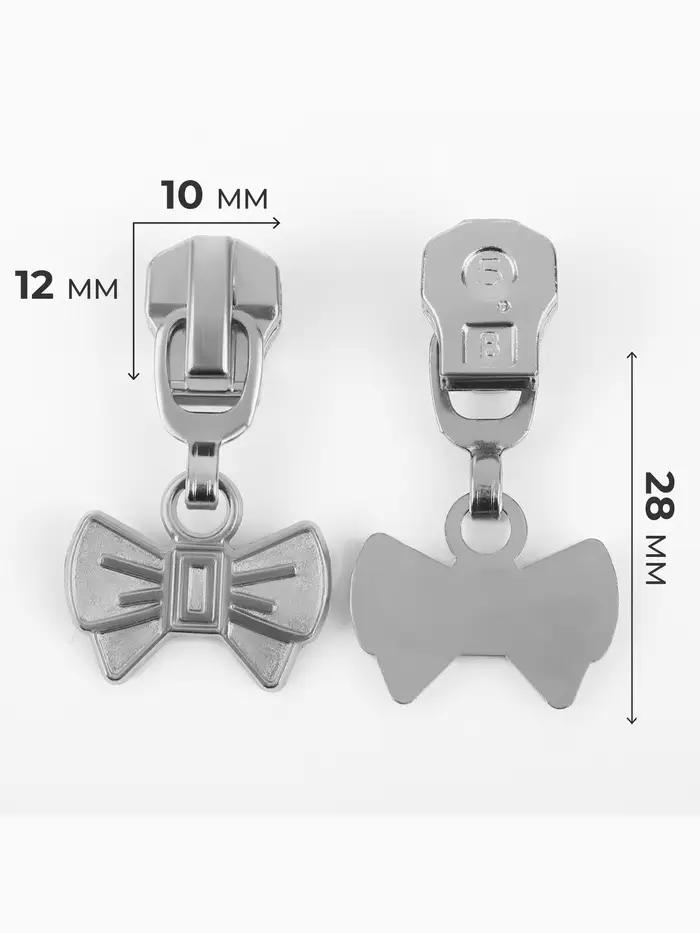 Бегунок для металлической молнии, №5, «Бант», 10 шт., цвет никель