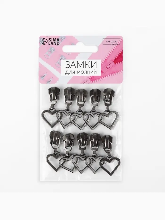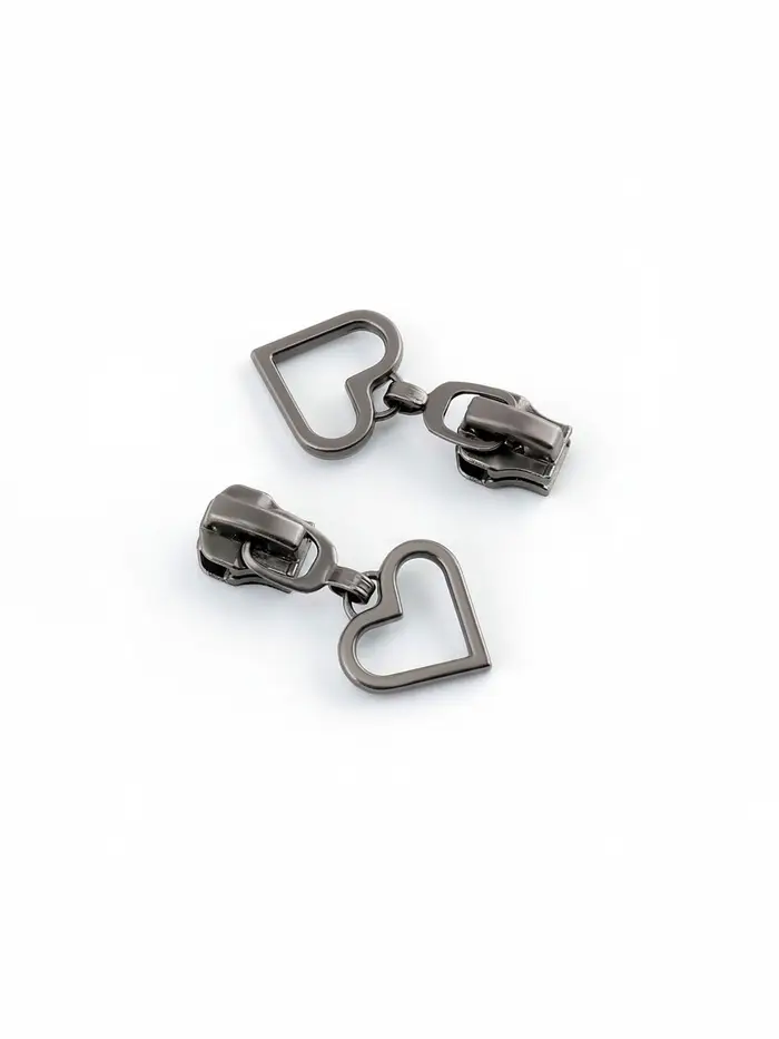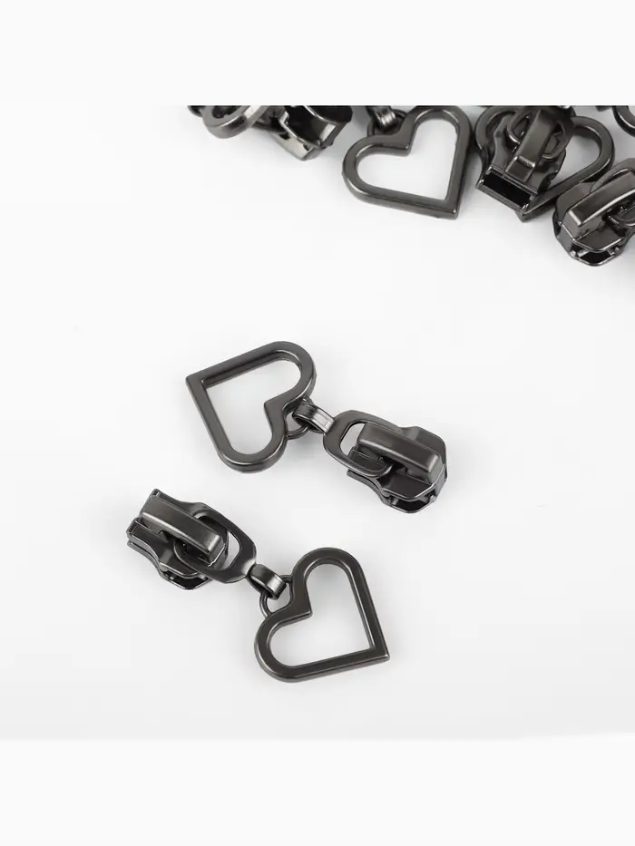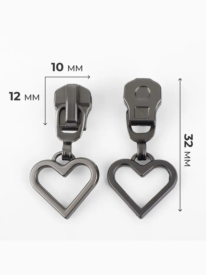 Бегунок для металлической молнии, №5, «Сердце», 10 шт., цвет чёрный никель