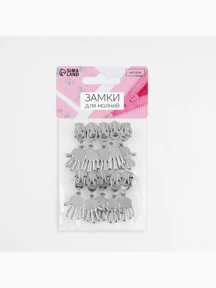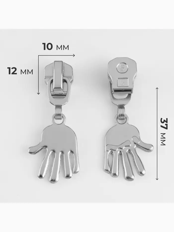 Бегунок для металлической молнии, №5, «Ладонь», 10 шт., цвет никель