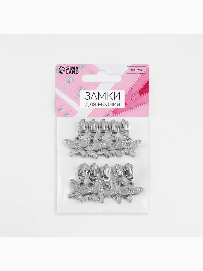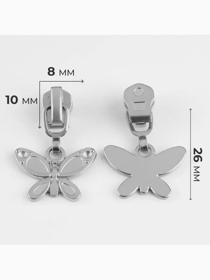 Бегунок для металлической молнии, №5, «Бабочка», 10 шт., цвет никель