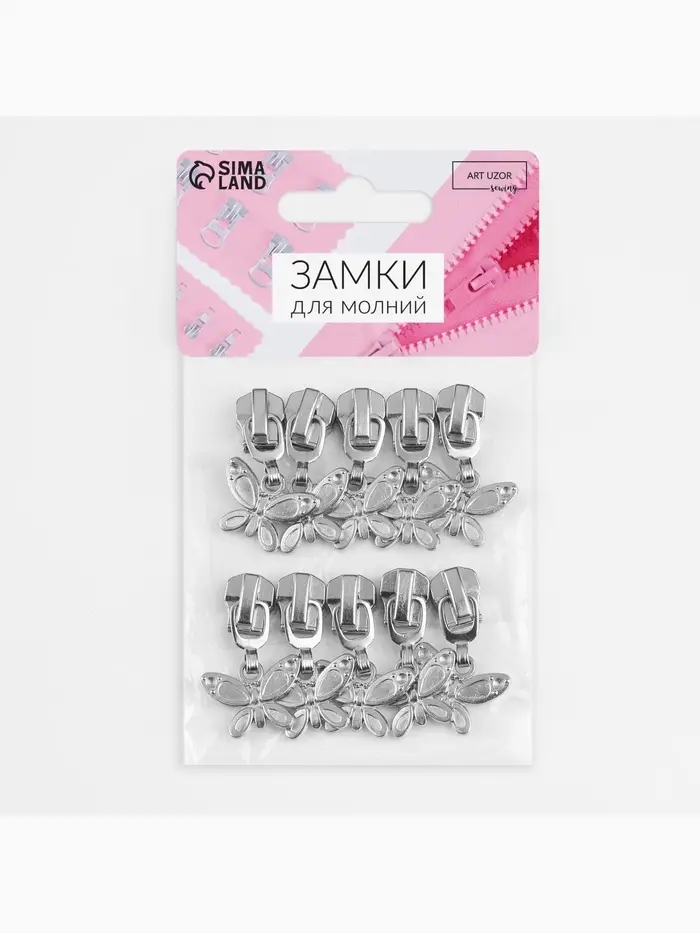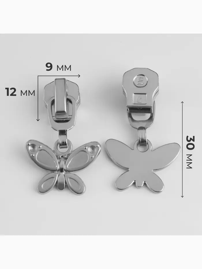 Бегунок для металлической молнии, №5, «Бабочка», 10 шт., цвет никель