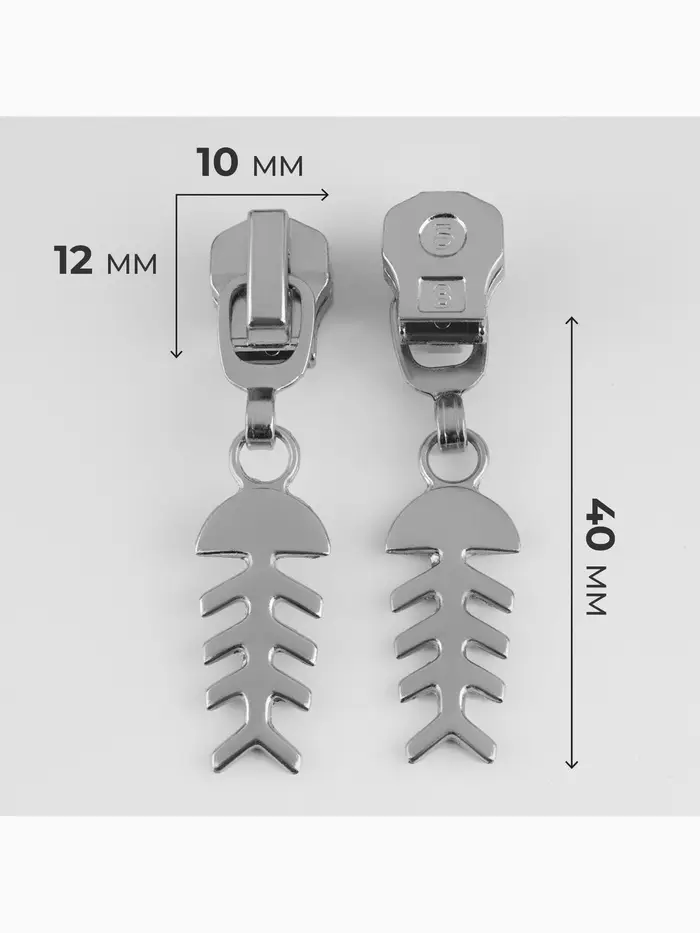 Бегунок для металлической молнии, №5, «Рыба», 10 шт., цвет никель