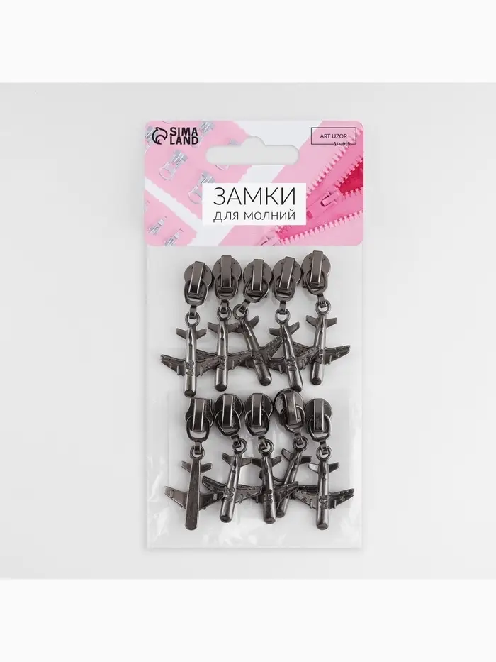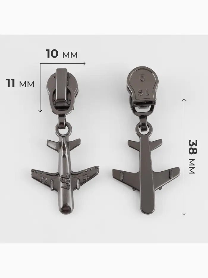Бегунок для металлической молнии, №5, «Самолёт», 10 шт., цвет никель