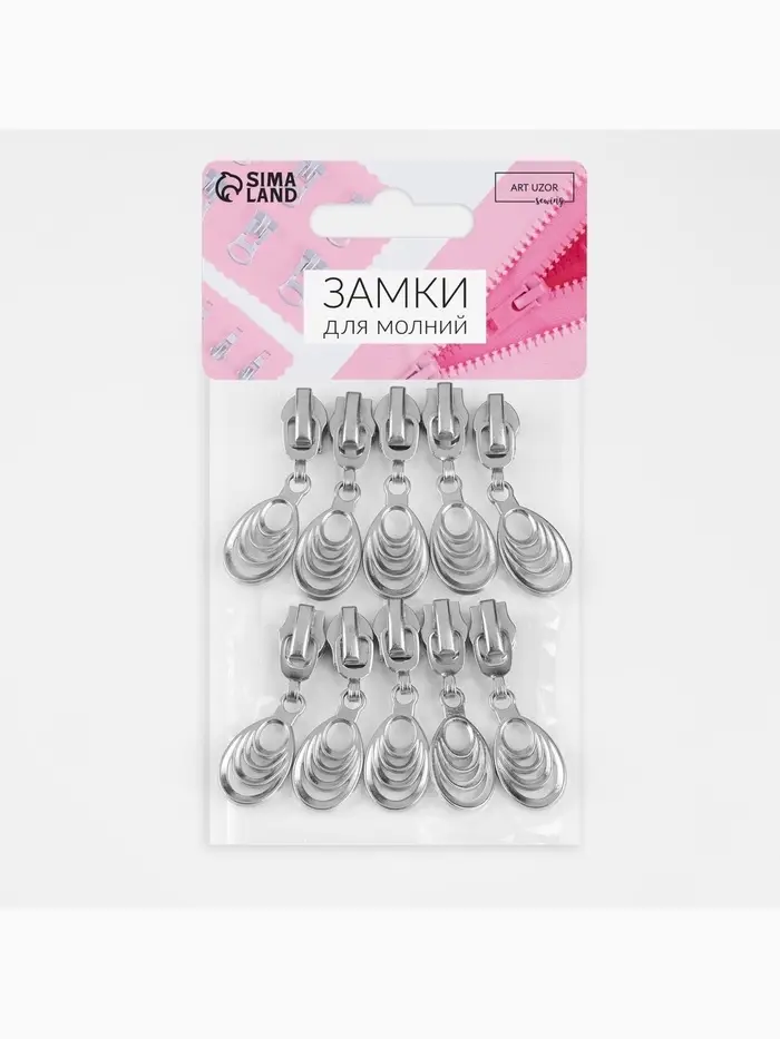 Бегунок для молнии «Спираль», №7, «Звенья», 10 шт., цвет никель