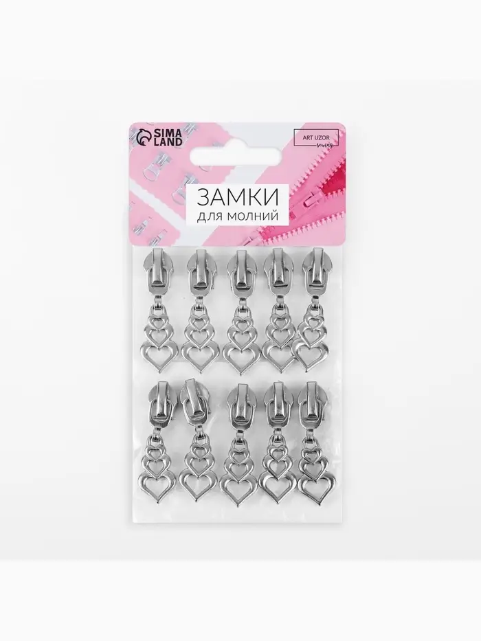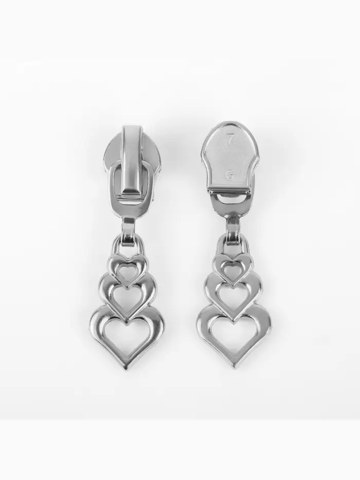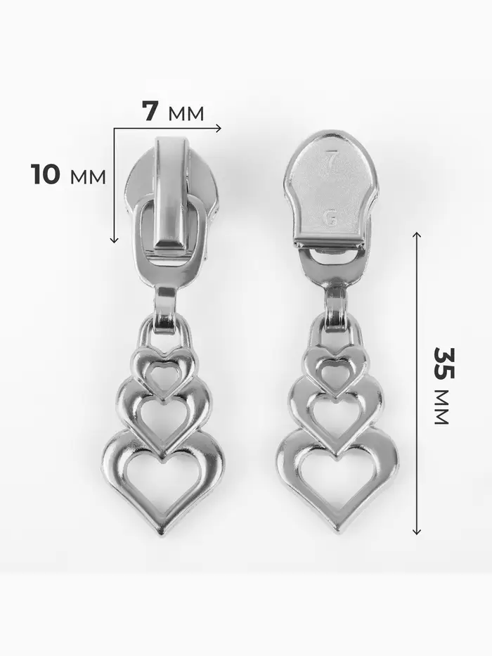 Бегунок для молнии «Спираль», №7, «Сердца», 10 шт., цвет никель