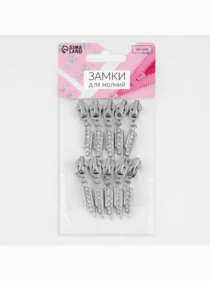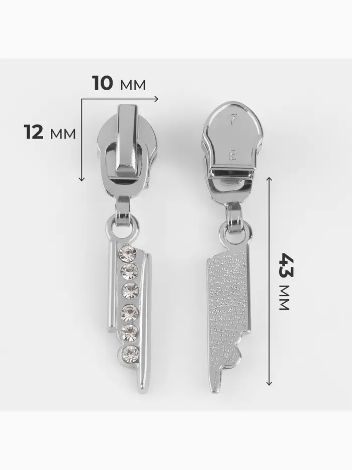 Бегунок для молнии «Спираль», №7, «Стразы», 10 шт., цвет никель