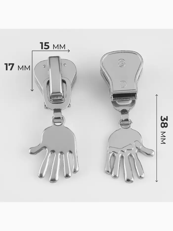 Бегунок для молнии «Трактор», №8, «Ладонь», 10 шт., цвет никель