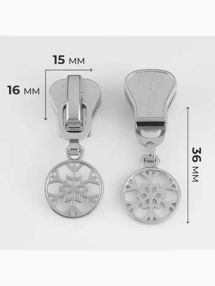 Бегунок для молнии «Трактор», №8, «Снежинка», 10 шт., цвет никель