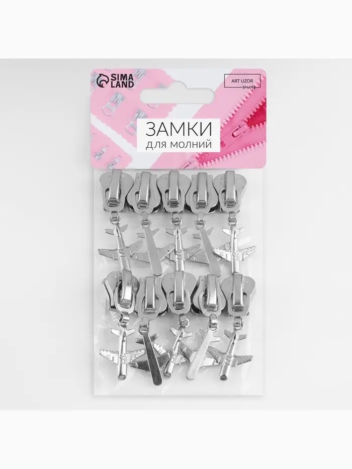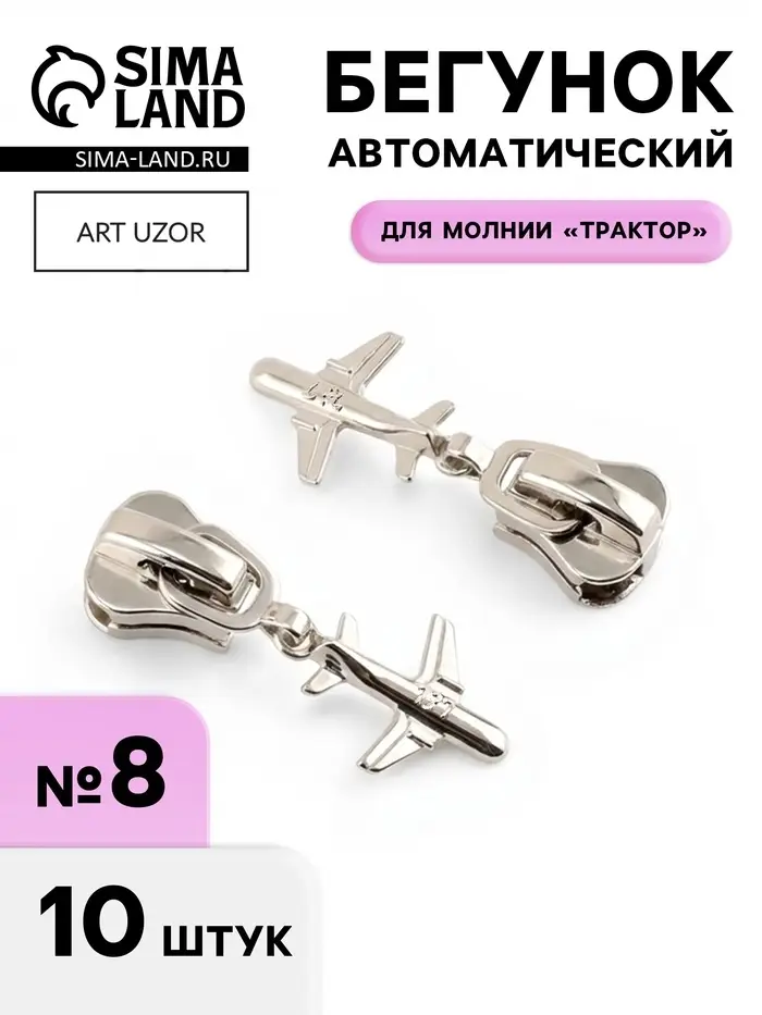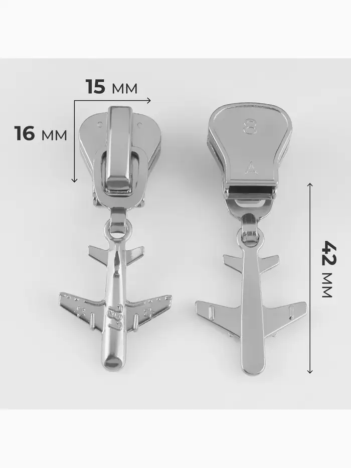 Бегунок для молнии «Трактор», №8, «Самолёт», 10 шт., цвет никель