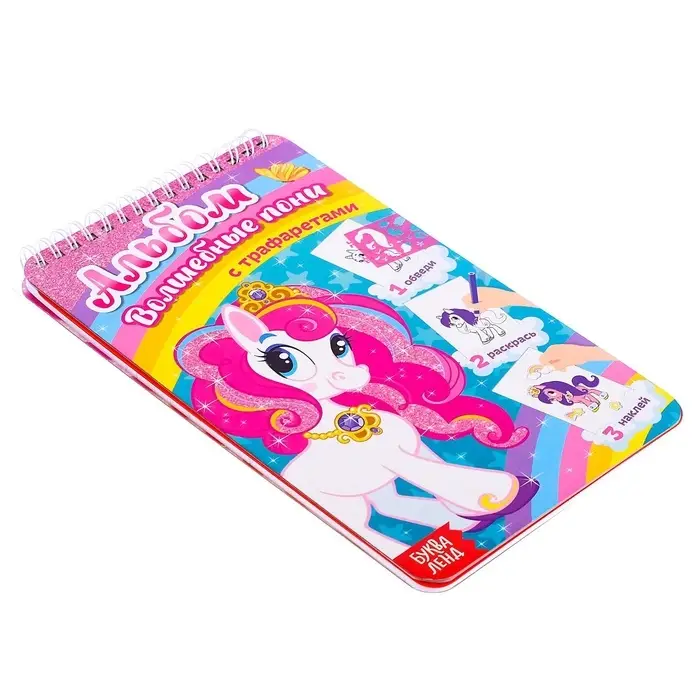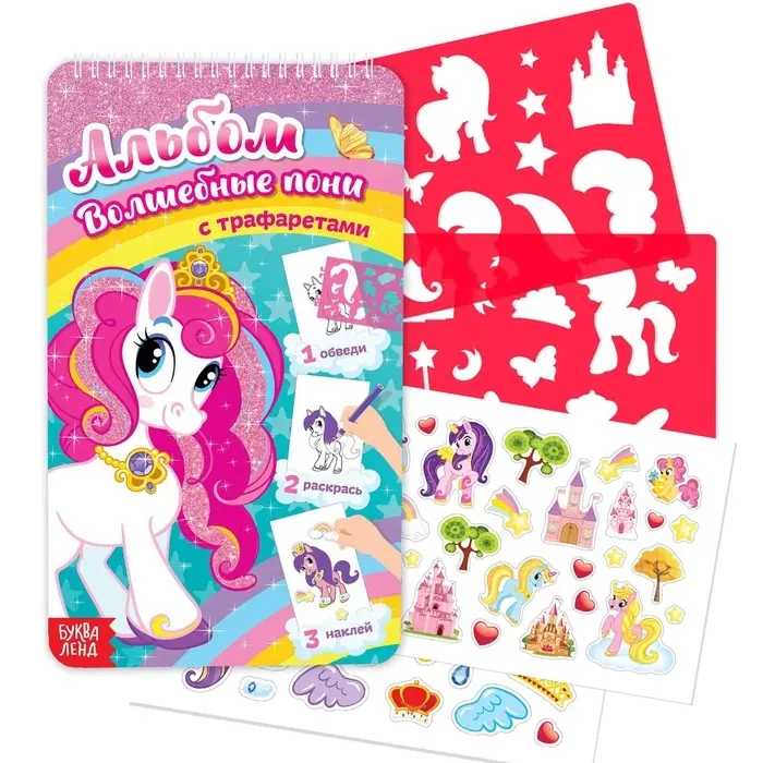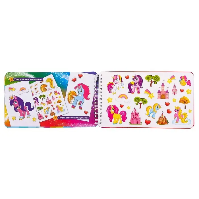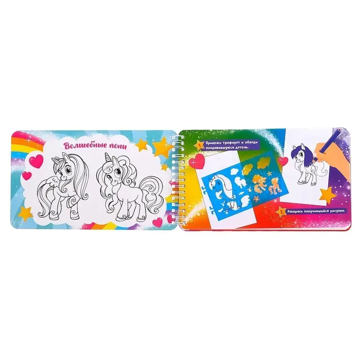 Раскраска - альбом «Волшебные пони», 72 стр., с наклейками и трафаретами
