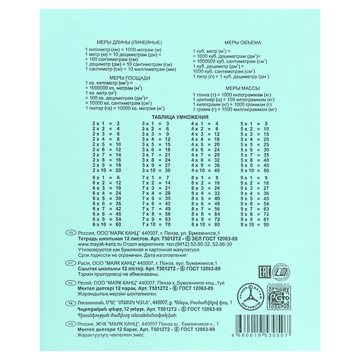 Комплект тетрадей из 10 штук, 12 листов в клетку Маяк "Зелёная обложка", 60 г/м2, блок офсет, белизна 90-99%