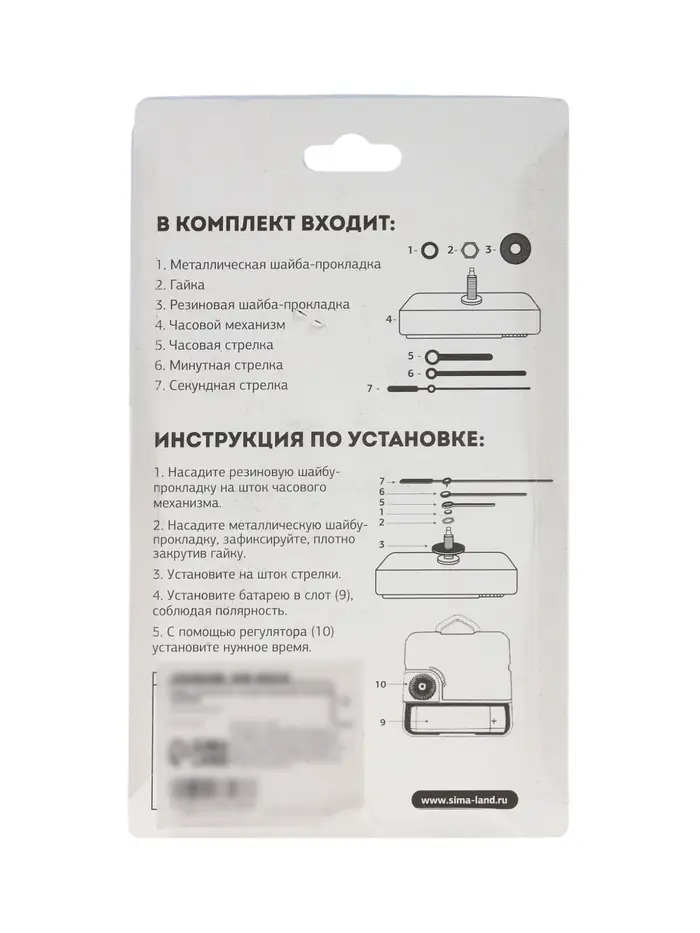 Часовой механизм со стрелками «Соломон-55», плавный ход, шток 16 мм, стрелки 60/85/90 мм