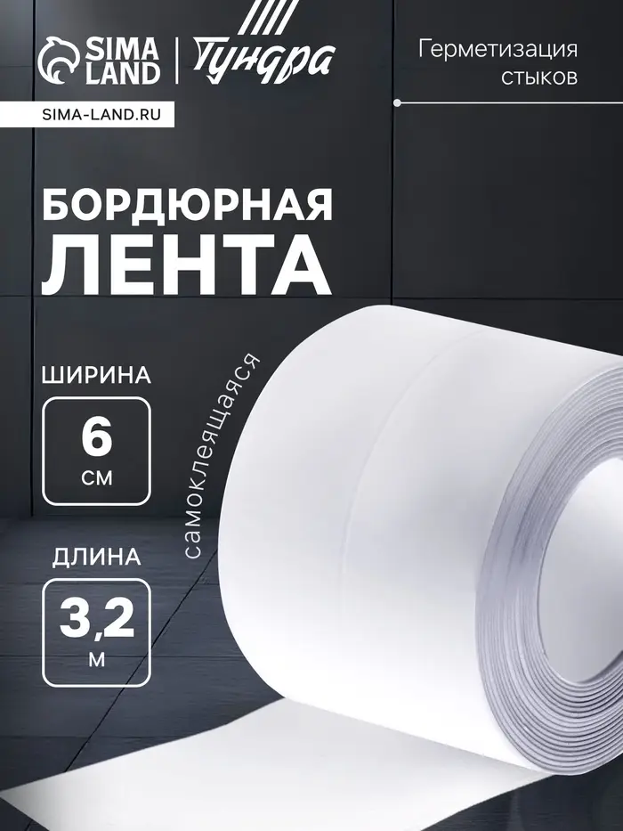 Лента бордюрная ТУНДРА, для ванн и раковин, самоклеящаяся, белая, 60 мм × 3.2 м