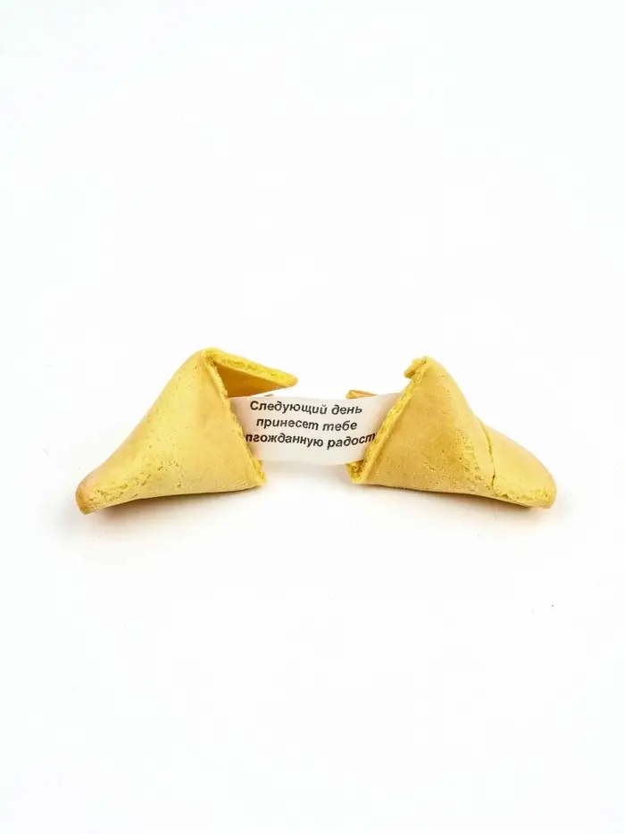 Печенье с предсказаниями — сладкий сюрприз с посланием! Хрустящее ванильное печенье в традиционной форме, внутри — бумажка с оригинальным предсказанием.