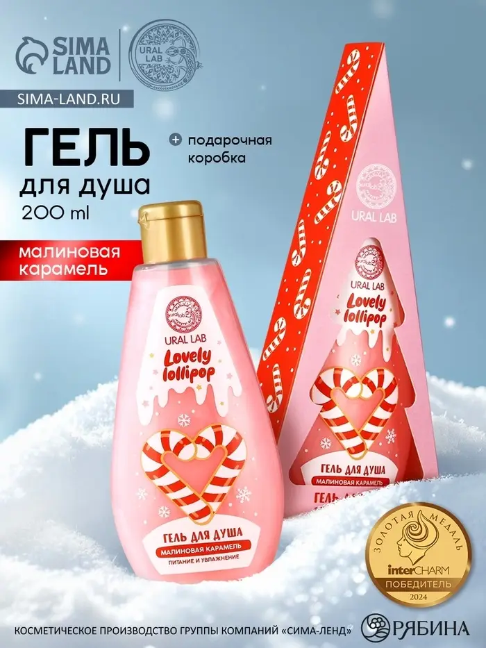 Гель для душа в коробке, 200 мл, аромат малиновой карамели, URAL LAB