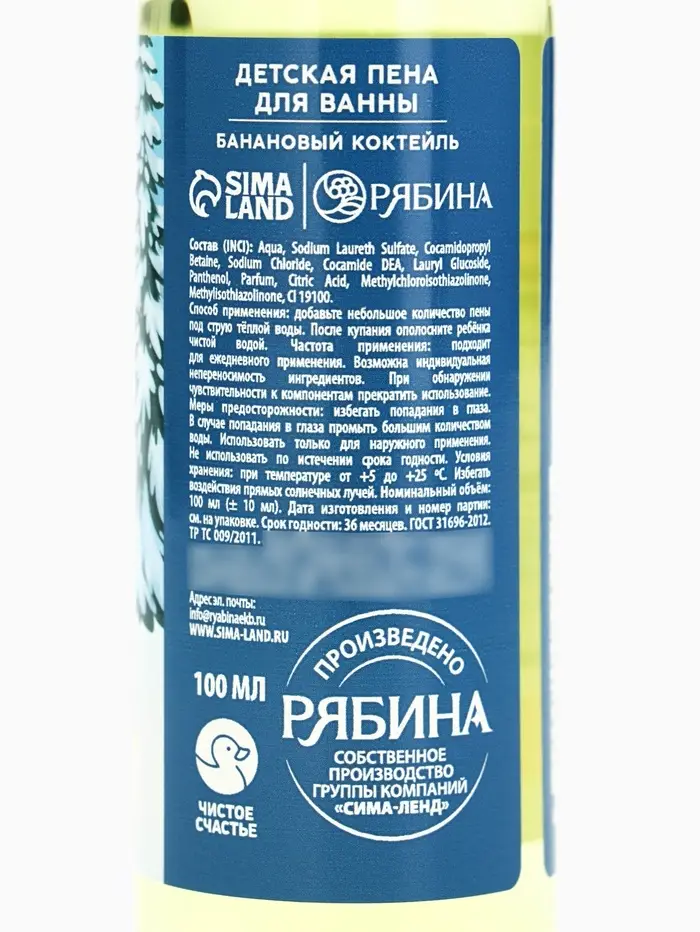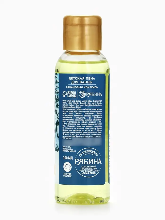 Пена для ванны детская «Тепла и уюта», 100 мл, аромат бананового десерта, Чистое счастье