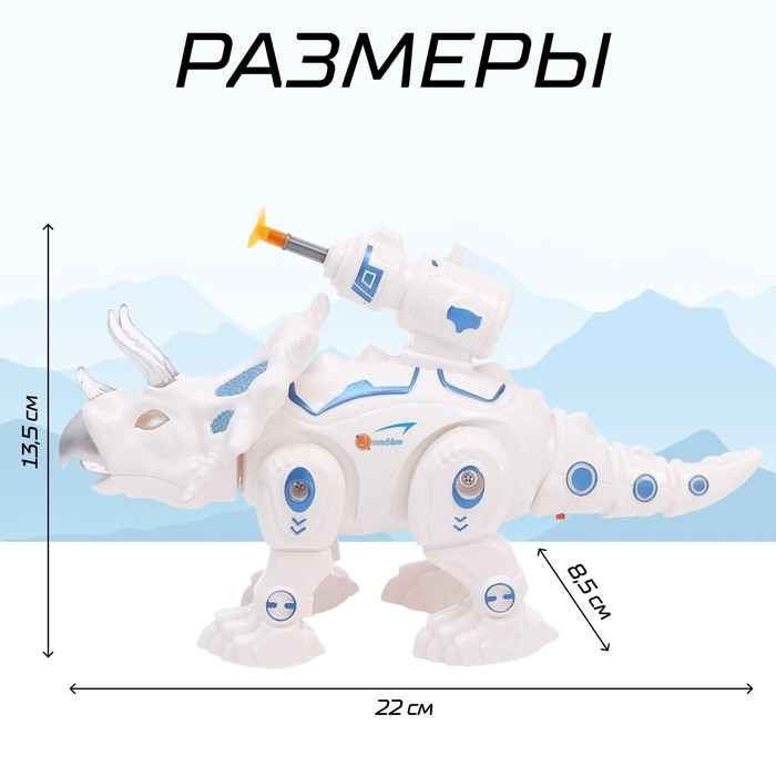 Покорите мир динозавров с роботом «Трицератопс»! Динозавр выполнен настолько реалистично, словно машина времени отправила его прямиком из доисторического периода. «Трицератопс» оживает в руках ребёнка: он не просто ходит, а с громким рёвом покоряет территорию вашей комнаты.
