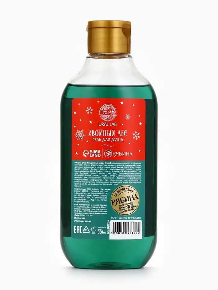 Гель для душа URAL LAB, 300 мл, аромат хвойный лес, Новый Год