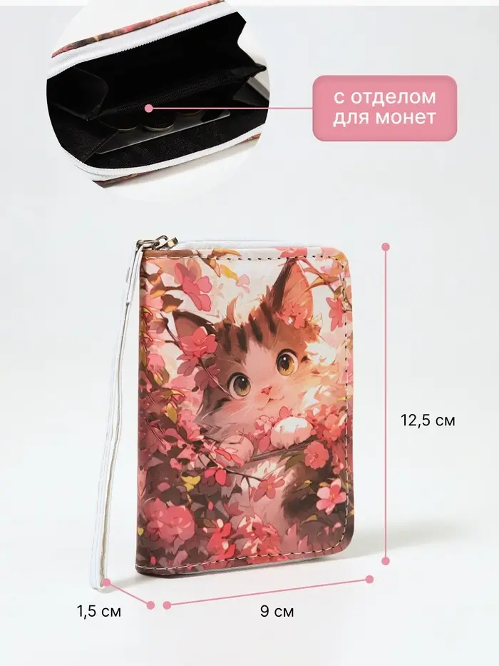 Кошелёк детский Выбражулька «Кот в цветочках», на молнии, разноцветный