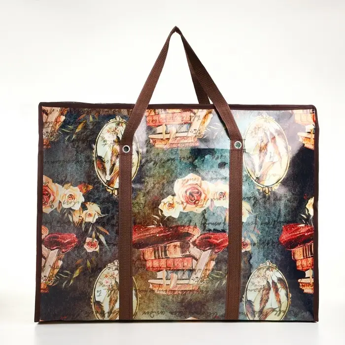 Сумка помогает оптимизировать регулярные походы в магазин — внутрь помещается недельный запас продуктов или бытовые товары. Ручки не врезаются в ладони даже при полной загрузке. После использования внутреннюю поверхность достаточно протереть влажной тканью. Принт с растительным орнаментом делает баул уместным в разных ситуациях, от поездки на дачу до посещения гипермаркета. Конструкция выдерживает интенсивную эксплуатацию без потери функциональности.