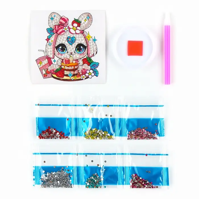 Алмазная мозаика наклейка для детей «Милый Зайка», 9×9 см, набор для творчества