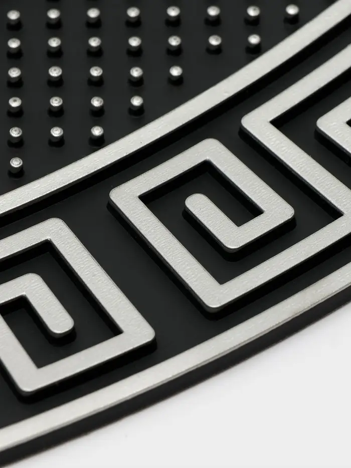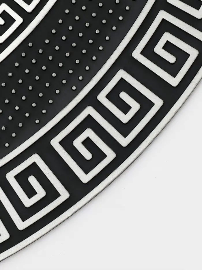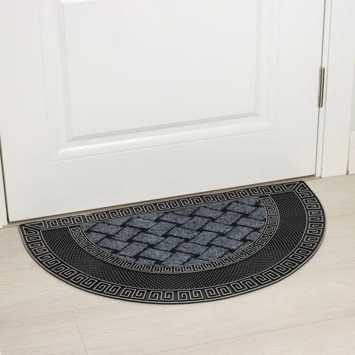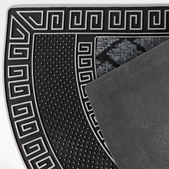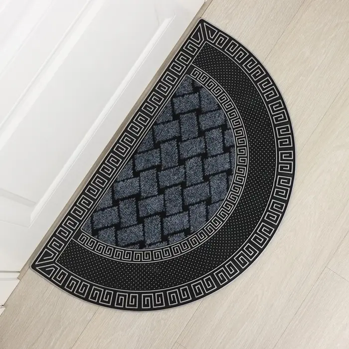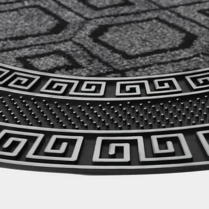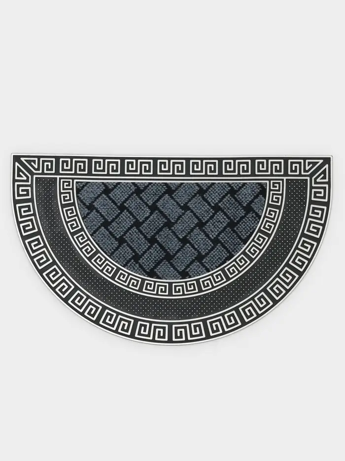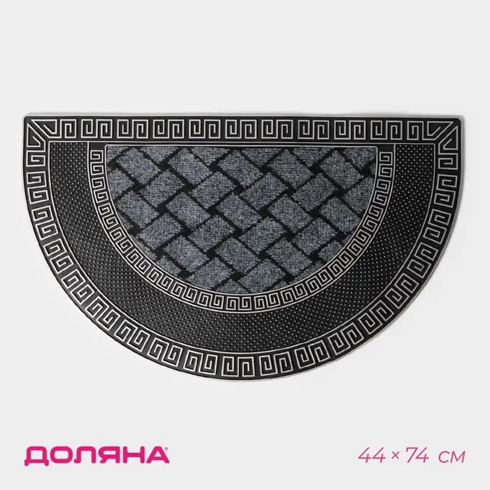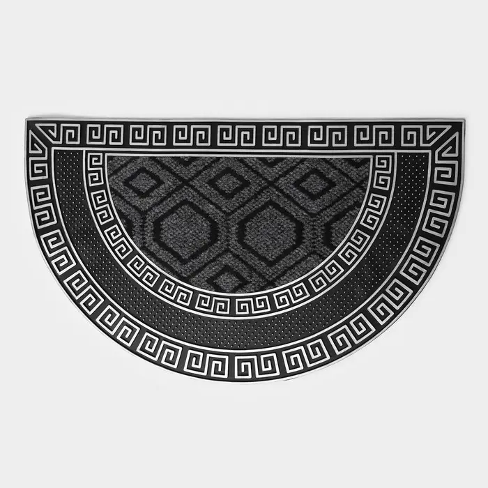 Коврик придверный полукруглый Доляна «Меандр», 44×74 см, серебряный