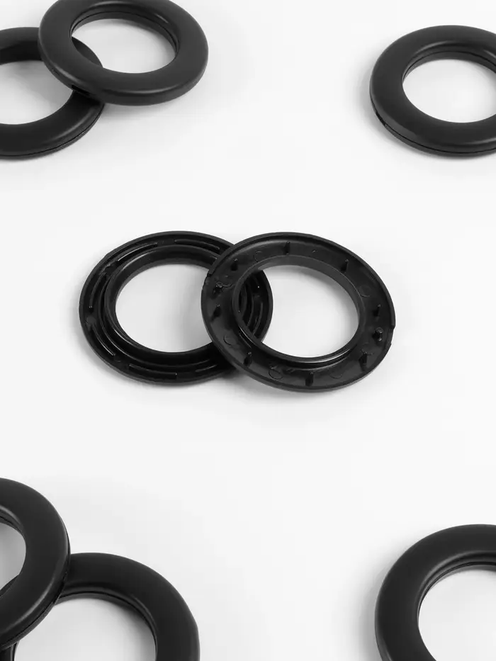 Создайте завершённый образ окна без лишних усилий! Чёрные матовые люверсы — это сочетание строгости и функциональности. Изделия из прочного пластика подходят для тяжёлых штор, ламбрекенов и декоративных элементов интерьера. Упаковка содержит 10 парных элементов с диаметром отверстия 3,5/5,5 см.