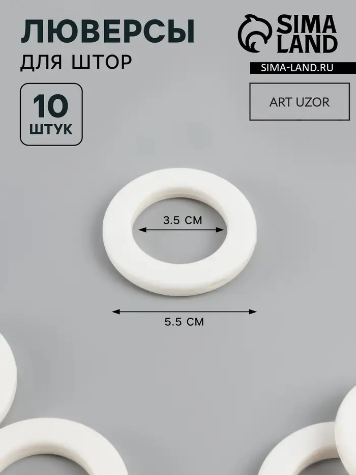Люверсы для штор, d=3.5/5.5 см, 10 шт., матовые, белые