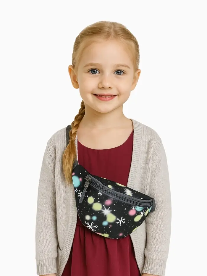 Эта детская поясная сумка — верный спутник для маленького исследователя. Компактный чёрный рюкзак на пояс не стесняет движений, а всё необходимое для приключений всегда под рукой.