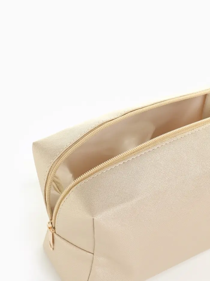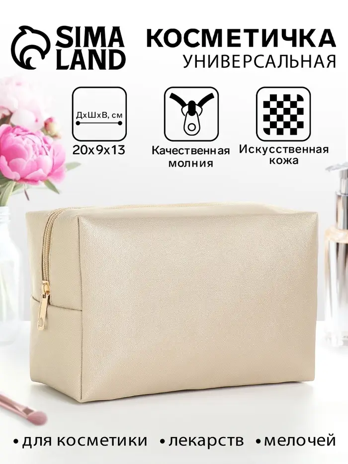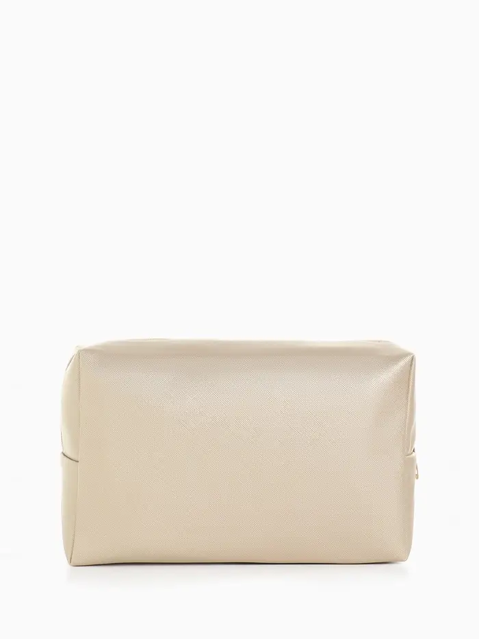 Эта золотая косметичка — ваш надёжный спутник в мире красоты. Она создана, чтобы аккуратно разместить всё самое важное: от любимой помады до миниатюр парфюма. Объёмный дизайн с одним вместительным отделением легко справляется с ежедневным набором уходовых средств и косметики, сохраняя идеальный порядок внутри. Молния с бегунком в тон материала открывает и закрывается плавно, без заеданий.